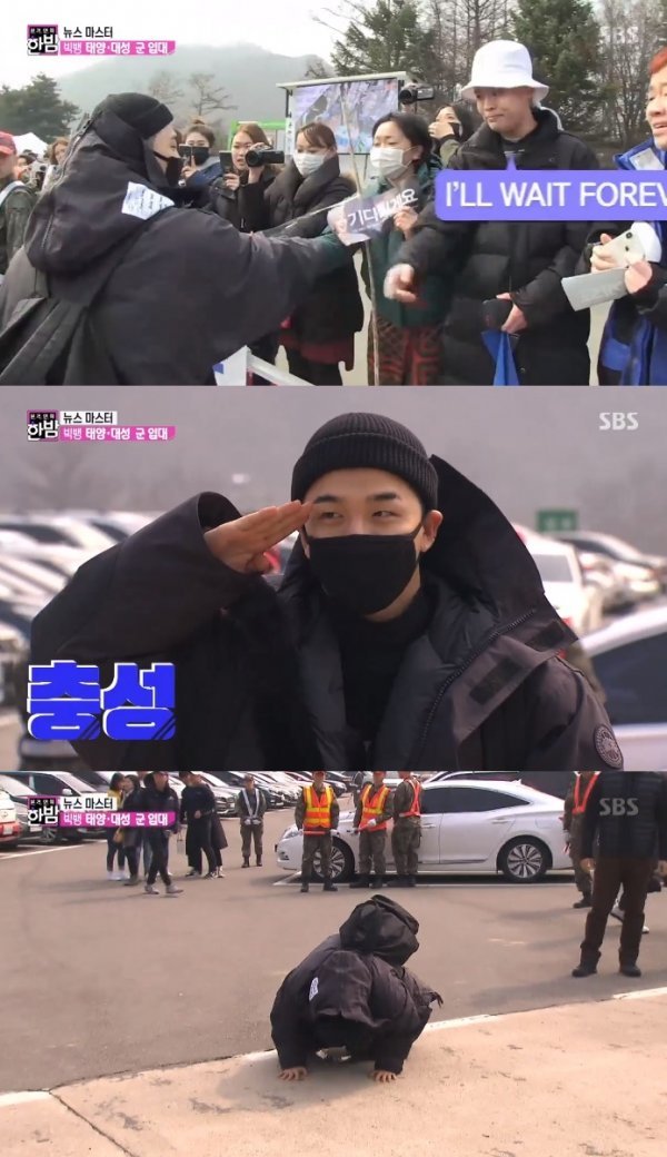 13일 오후 방송된 SBS ‘본격연예 한밤’ (이하 ‘한밤’)에서는 최근 군 입대를 한 태양의 입대 현장이 영상으로 공개됐다.