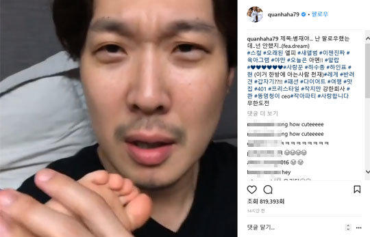 #스컬 #오래된 엘피 #새앨범 #이젠진짜 #육아그램 #야만 #오늘은 아멘!! #알랍#사랑꾼 #하수종 #하인표 #현 (이거 한방에 아는사람 천재)#레게 #반려견 #갑자기??!! #패션 #다이어트 #여행 #맛집 #401 #프리스타일 #작지만 강한회사 #콴 #똥멍청이 ceo#작아파티 #사랑합니다 무한도전”이라는 메시지와 해시태그를 남기고 영상을 공개했다.