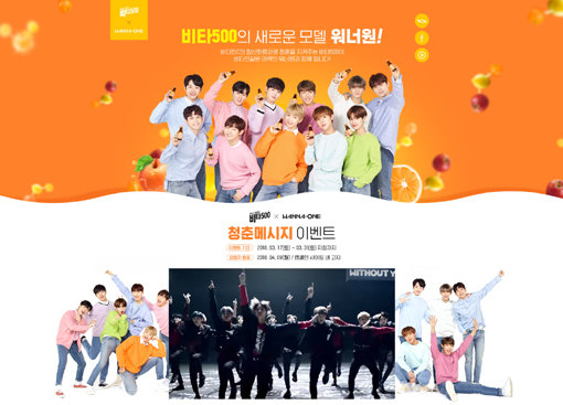 17일부터 비타500 캠페인 사이트에서 강다니엘, 박지훈, 옹성우 등 워너원 멤버 11명이 청춘의 의미를 표현한 메시지를 보고, 해당하는 워너원 멤버 중 한 명을 연결한 뒤, 영상을 자기 페이스북에 공유하면 응모가 완료된다.