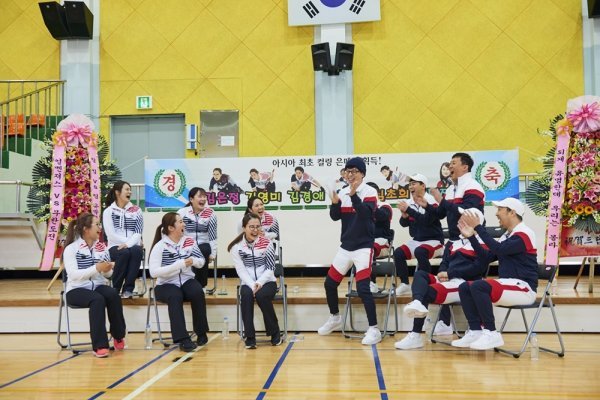 의성 체육관에서 첫 만남을 가진 ‘무한도전’ 멤버들과 ‘컬벤져스’는 서로의 모습에 신기해하며 웃음을 터트렸다는 전언이다. ‘안경선배’ 김은정은 ‘무한도전’ 멤버들을 만난 소감을 묻자 “’무한도전’ 너무 나와 보고 싶어서..”라며 말을 잇지 못하며 귀여운 모습을 보여줬다.