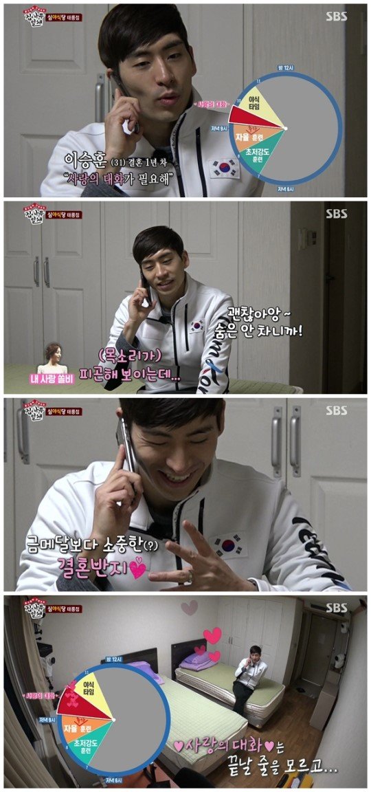 SBS ‘집사부일체’18일 방송에서 이승훈은 ‘사랑의 대화’라는 일정표에 따라 아내와 통화하는 시간을 가졌다.