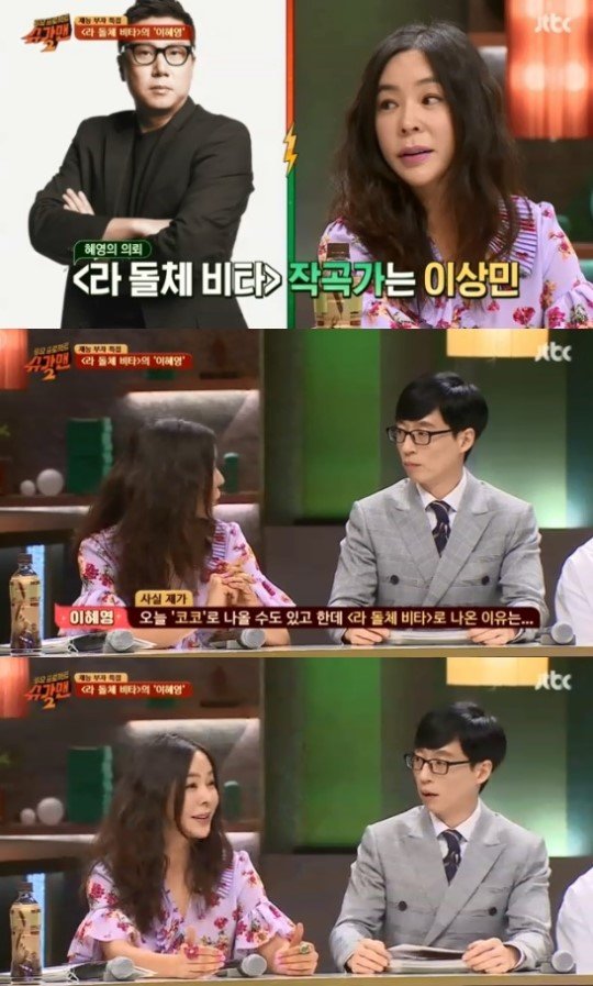 '라 돌체 비타' 탄생 과정을 설명하던 이혜영은 "작곡은 이상민 씨가 했다. 최근에 예능을 너무 잘해서 놀랍지만 음악적 재능을 계속 발휘했으면 해서 코코가 아닌 이 곡을 택했다"고 말했다.