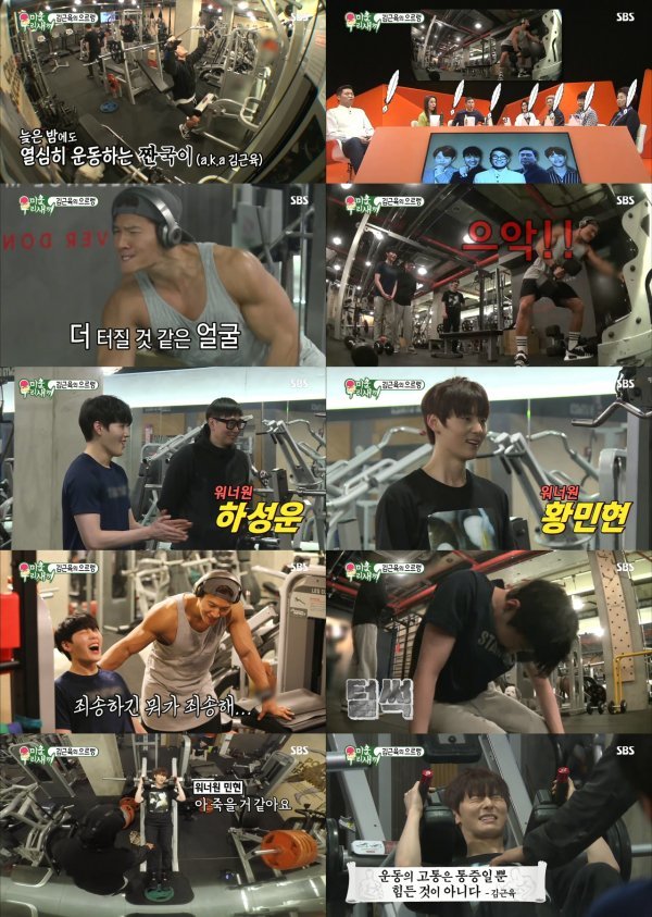 한편, 이날 ‘최고의 1분’을 차지한 주인공은 김종국. 김종국은 늦은 밤 헬스클럽에서 여느 때와 같이 운동 삼매경에 빠져있었다. 어마어마한 무게를 괴성과 함께 들어 올리는 김종국의 모습에 마침 헬스클럽을 찾은 워너원 하성운과 황민현은 입을 다물지 못했다.