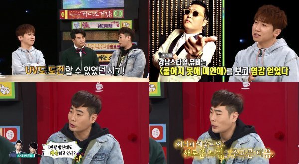 이에 유세윤은 싸이와 통화를 했다며 싸이가 강남스타일 뮤직비디오를 ‘쿨하지 못해 미안해’ 뮤직비디오를 보고 영감 받은 거라고 말해줬다고 밝혀 주변 사람들을 놀라게 했다. 이어 싸이가 먼저 그렇게 말해줘서 너무 고마웠다고 밝혀 훈훈한 선후배의 모습을 보여 보는 이들을 흐뭇하게 했다.