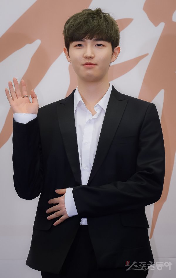 보이그룹 워너원 김재환이 19일 서울 마포구 상암동 스탠포드 호텔에서 열린 두 번째 미니앨범 ‘0+1=1(I PROMISE YOU)’ 발매 기념 기자회견에서 포즈를 취하고 있다.