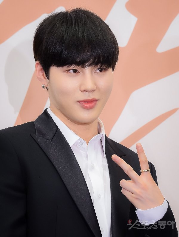 보이그룹 워너원 하성운이 19일 서울 마포구 상암동 스탠포드 호텔에서 열린 두 번째 미니앨범 ‘0+1=1(I PROMISE YOU)’ 발매 기념 기자회견에서 포즈를 취하고 있다.