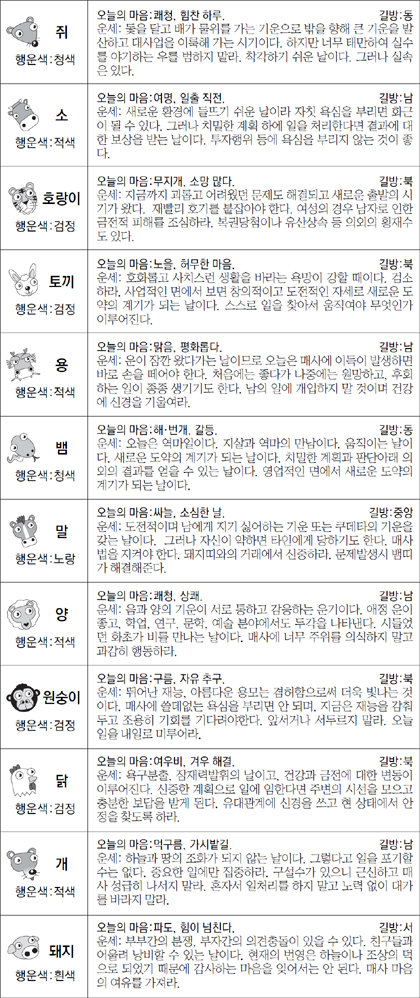 ■ 오늘의 운세|박경호의 운수 좋은 날