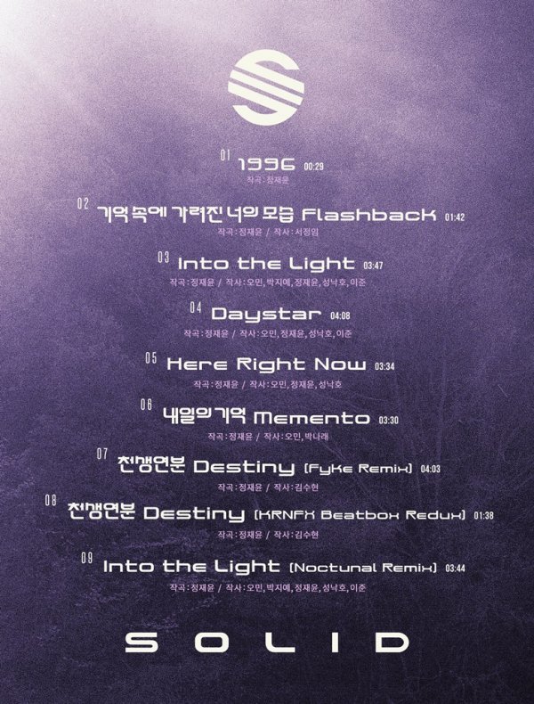 솔리드의 새 앨범 트랙리스트가 베일을 벗었다.