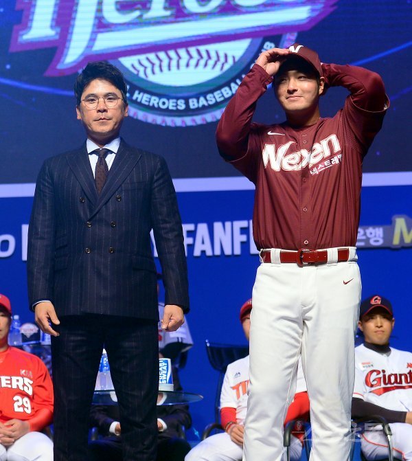 22일 서울 용산구 블루스퀘어 아이마켓홀에서 ‘2018 신한은행 MY CAR KBO리그’ 미디어데이와 팬페스트 행사가 열렸다. 넥센 장정석 감독과 박병호가 팬들에게 인사하고 있다.