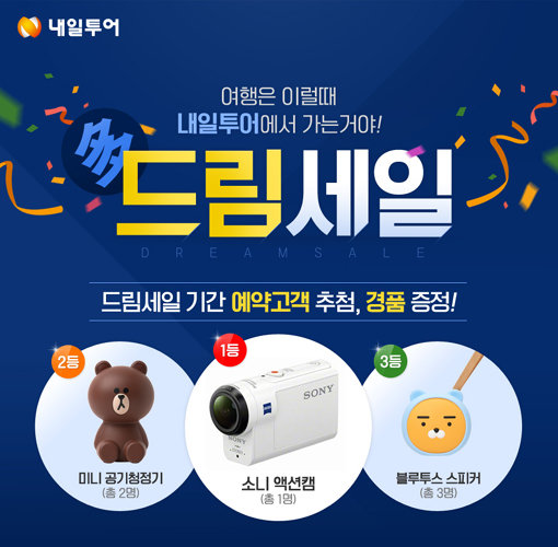 개별 자유여행 전문 내일투어는 4월5일까지 여행상품 이벤트 ‘드림세일’을 진행한다. 2만3900원으로 해외 패스 티켓을 구매할 수 있으며, 이벤트 기간 동안 개별여행 상품을 구매할 시 추첨하여 상품으로 준다.