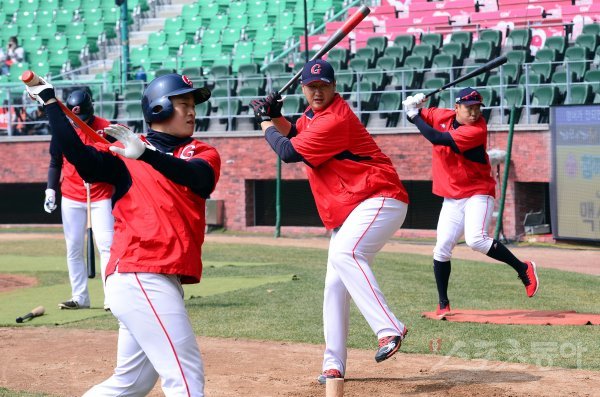 25일 인천 SK행복드림구장에서 ‘2018 신한은행 마이카 KBO리그’ SK 와이번스와 롯데 자이언츠의 경기가 열린다. 경기 전 롯데 손아섭, 이대호, 전준우가 타격 훈련을 펼치고 있다.