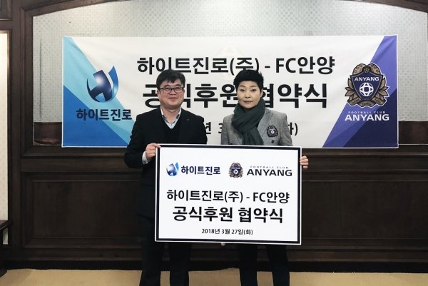 프로축구 K리그2 FC안양(구단주 이필운)이 하이트진로(주)와 후원 협약을 체결했다.