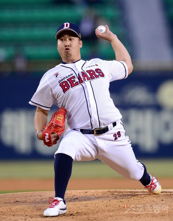 28일 서울 잠실야구장에서 ‘2018 신한은행 MY CAR KBO리그’ 롯데자이언츠와 두산베어스 경기가 열렸다. 선발 투수로 등판한 두산 유희관이 역투하고 있다.