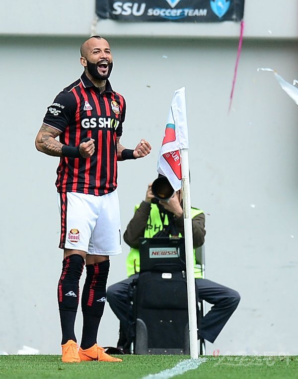 1일 서울월드컵경기장에서 열린 프로축구 ‘2018 KEB 하나은행 K리그1(클래식)’ 인천유나이티드와 FC서울 경기에서 후반전 서울 에반드로가 선제골을 성공시킨 후 기뻐하고 있다.