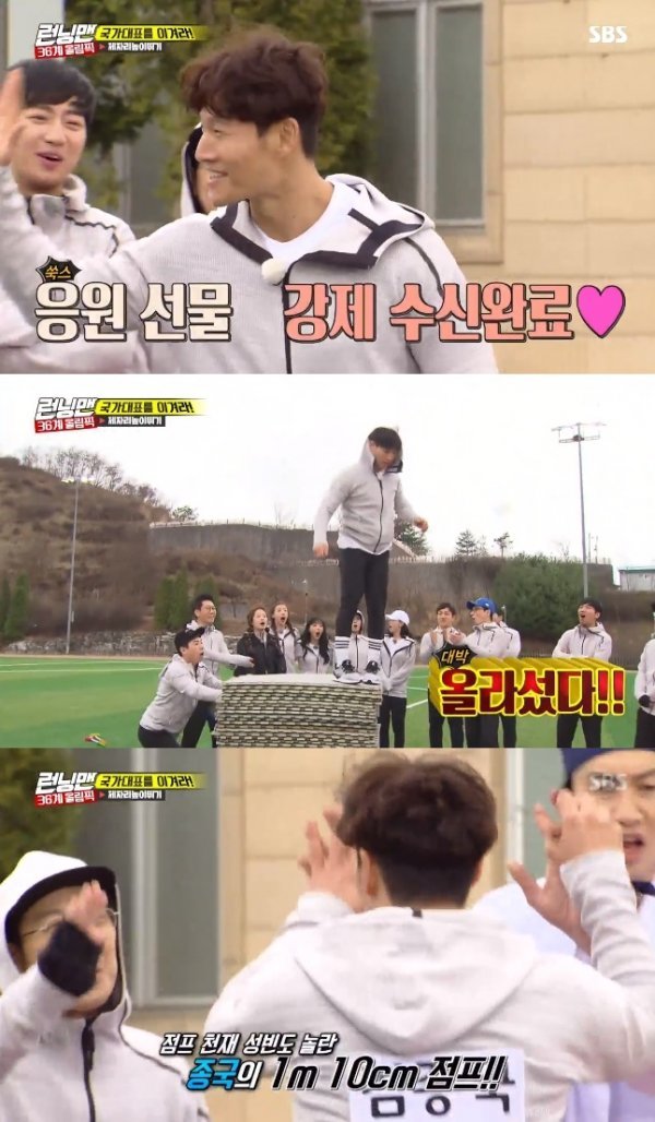 ‘런닝맨’ 김종국, 윤성빈도 놀란 점프력...1m 10cm 성공