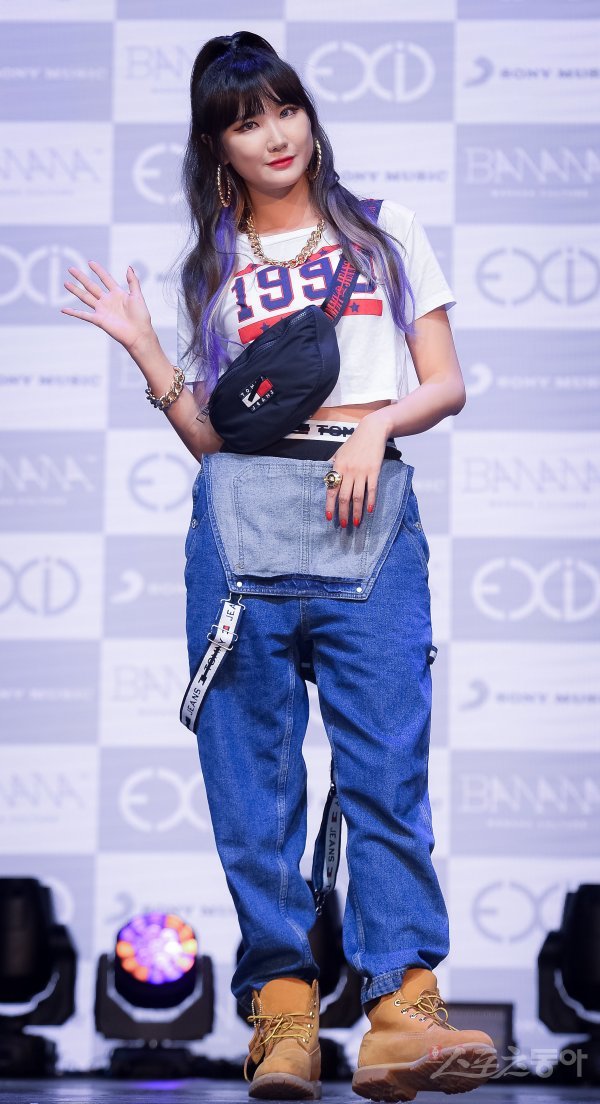 걸그룹 EXID의 LE가 2일 서울 중구 신세계 메사홀에서 열린 신곡 ‘내일해’ 발매 기념 쇼케이스에서 포즈를 취하고 있다.