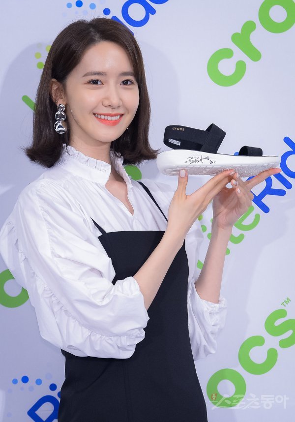 가수 겸 배우 윤아가 3일 서울 강남구 삼성동 하나금융 삼성역 기업센터에서 열린 글로벌 캐주얼 풋웨어 브랜드의 포토월에 참석해 포즈를 취하고 있다.