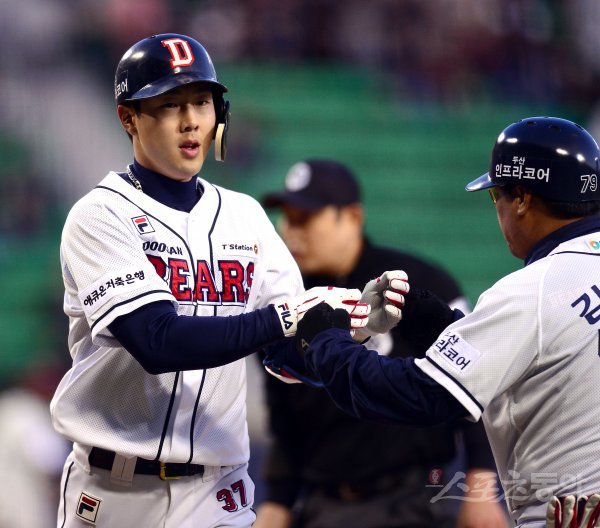 4일 서울 잠실야구장에서 ‘2018 신한은행 MY CAR KBO리그’ LG트윈스와 두산베어스 경기가 열렸다. 1회말 2사 두산 박건우가 우월 솔로 홈런을 날리고 그라운드를 돌아 홈인하고 있다.
