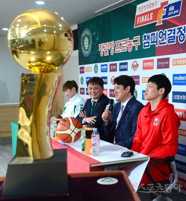 5일 서울시 강남구 KBL센터에서 열린 ‘2017-2018 프로농구’ 챔피언결정전 미디어데이 서울SK 문경은 감독이 취재진의 질문에 대답하고 있다.