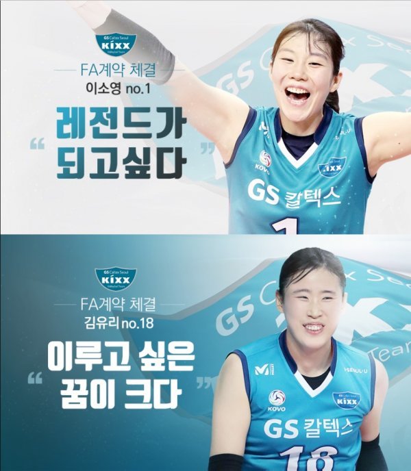 여자배구 GS칼텍스서울Kixx배구단이 2018년 FA 최대어인 이소영, 팀의 대들보인 김유리와 FA계약을 체결했다. 계약 연봉은 이소영은 2억원, 김유리는 1억 3000만원이다.