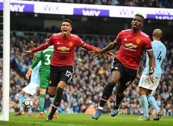 결승골을 기록한 스몰링-두 골을 넣은 포그바(오른쪽). 사진=게티이미지코리아