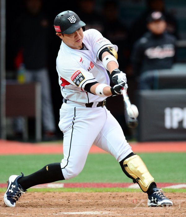 8일 수원 kt위즈파크에서 ‘2018 신한은행 마이카 KBO리그’ kt 위즈와 한화 이글스의 경기가 열렸다. 5회말 1사에서 kt 윤석민이 안타를 날리고 있다. 윤석민은 이날 3안타.