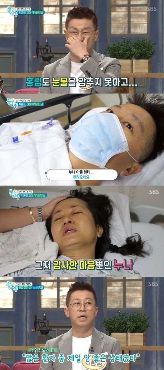 수술을 마친 최홍림은 누나부터 찾았다. 그는 “누나 아플 텐데”라며 기증을 해준 누나 걱정부터 하기 시작했다. 최홍림 누나는 “(최홍림이 내 신장을) 기본 20년은 썼으면 좋겠다”라고 말했다.