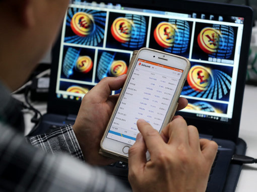 스마트폰 앱을 이용해 실시간으로 암호화폐 시세를 확인하고 있는 한 직장인. 지난해부터 뜨거운 암호화폐 열풍에 편승, 높은 수익을 미끼로 ICO나 채굴, 투자를 유도하는 유사수신 사기가 급증해 금융감독원이 각별한 경고를 당부하고 있다.