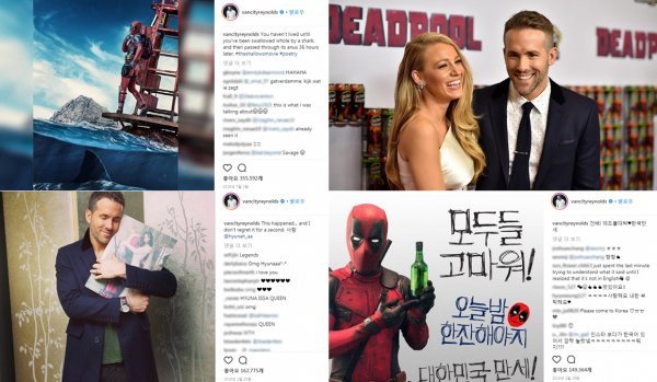 라이언 레놀즈는 ‘데드풀’에 대한 한국 영화 팬들의 뜨거운 관심에 힘입어 한국과 한국 영화 팬들에 대한 남다른 애정을 끊임없이 표현했다. 2016년 병신년을 맞이해 “해피 병신년”이라는 한국말 인사 영상부터, 가수 현아와 데드풀의 특별 화보를 품에 안은 채 행복해 하는 모습, ‘건배! 데드풀 대박♥ 한국만세’라는 문구와 함께 소주병을 들고 있는 데드풀의 모습을 자신의 SNS에 게시하는 등 유별난 한국 사랑을 드러낸 바 있다.