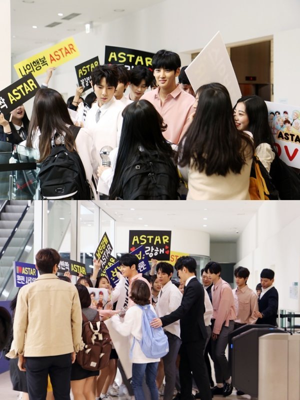 앞서 공개된 드라마 스틸 사진에서는 방송사 로비에서 에이스타가 박힌 티셔츠에 야광봉, 플래카드를 든 수많은 팬들 사이에 둘러싸인 헤일로의 모습이 포착돼 궁금증을 자아냈다.