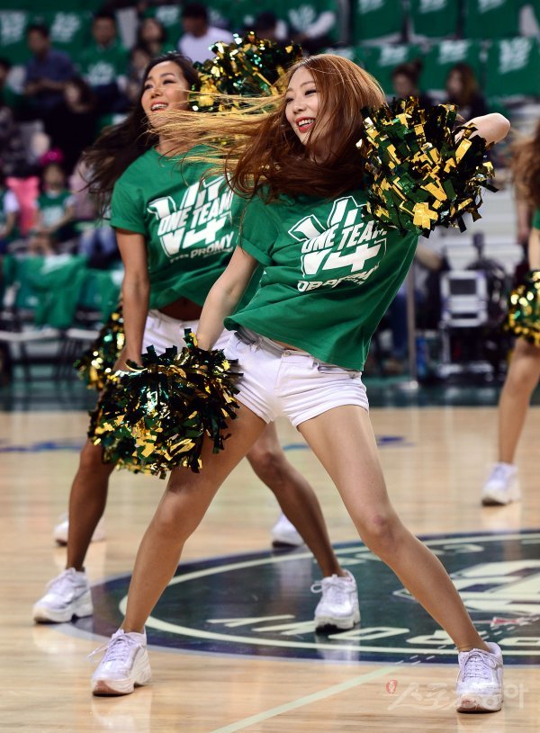 10일 강원도 원주 치악체육관에서 열린 ‘2017-2018 정관장 프로농구’ 원주 DB와 서울 SK의 챔피언결정전 2차전 경기에서 DB 치어리더가 화려한 공연을 선보이고 있다.