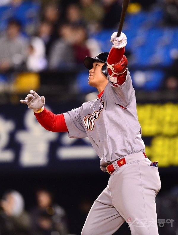 10일 서울 잠실야구장에서 ‘2018 신한은행 MY CAR KBO리그’ SK와이번스와 LG트윈스 경기가 열렸다. 5회초 1사 1루 SK 최승준이 좌월 투런 홈런을 날리고 있다.