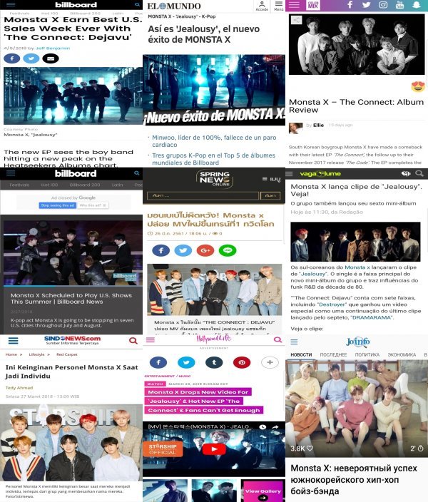 몬스타엑스의 소속사 스타쉽엔터테인먼트는 “지난달 26일 발매한 몬스타엑스의 앨범과 관련해 신곡 ‘Jealousy’(젤러시)가 미국 빌보드를 비롯해 스페인, 싱가포르, 브라질, 러시아, 네덜란드, 말레이시아, 인도네시아, 일본등 해외 유수의 언론에 잇따라 게재되며 집중 조명을 받았다”고 11일 밝혔다.