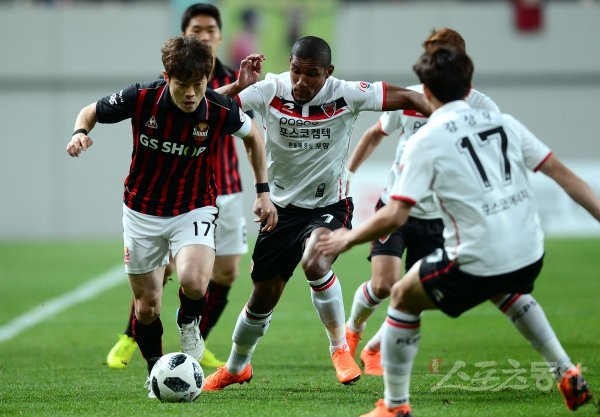 11일 서울 월드컵경기장에서 열린 ‘KEB하나은행 K리그1 2018’ FC 서울과 포항 스틸러스의 경기에서 서울 신광훈이 포항 제테르손의 수비를 제치며 돌파하고 있다.