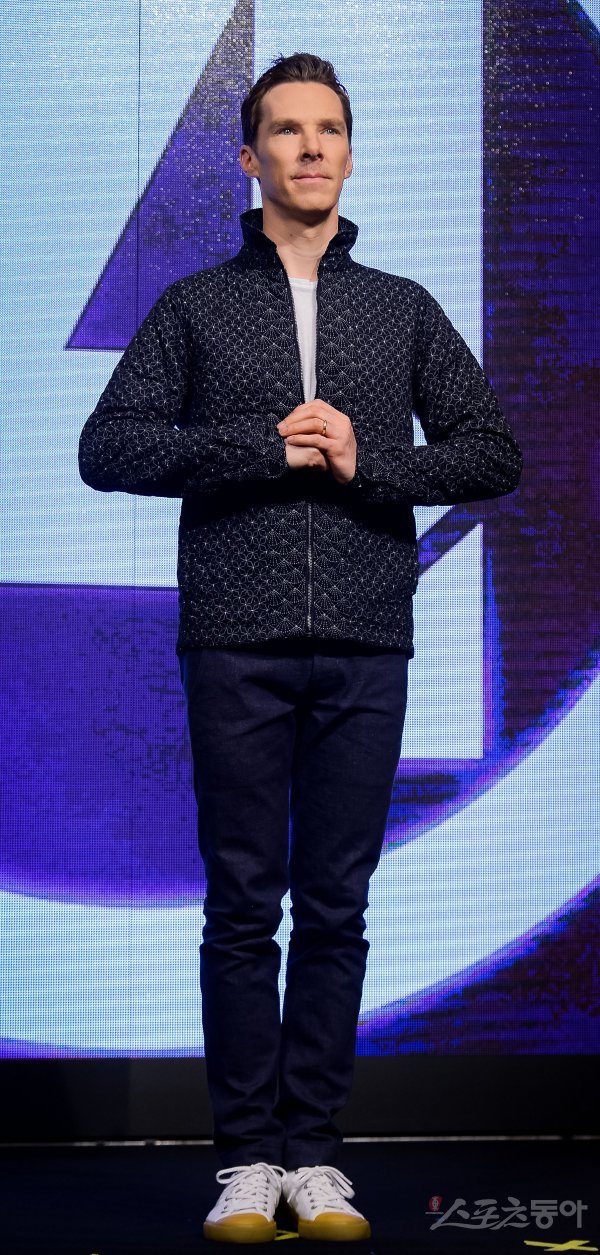 배우 베네딕트 컴버배치가 12일 서울 종로구 포시즌스호텔에서 열린 영화 ‘어벤져스 : 인피니티 워(Avengers: Infinity War)’ 내한 기자회견에서 포즈를 취하고 있다.