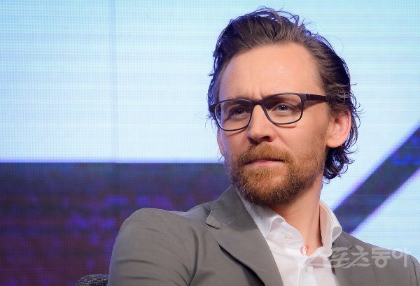 배우 톰 히들스턴이 12일 서울 종로구 포시즌스호텔에서 열린 영화 ‘어벤져스 : 인피니티 워(Avengers: Infinity War)’ 내한 기자회견에서 객석을 응시하고 있다.
