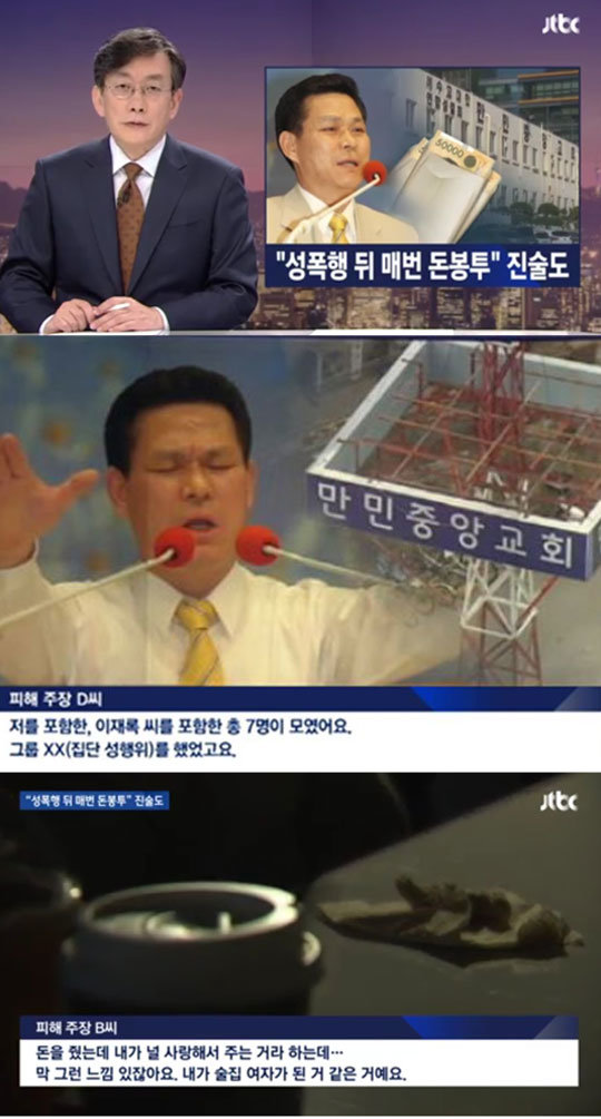 11일 방송된 JTBC ‘뉴스룸’측은 이재록 목사에게 성폭행을 당했다는 피해 여성들의 증언을 토대로 그가 집단 성행위까지 요구했다고 보도했다.