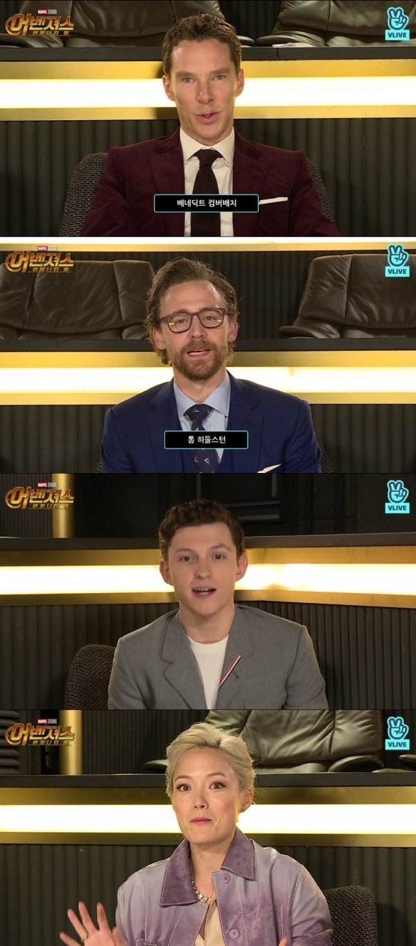 12일 오후 네이버 V앱을 통해 영화 ‘어벤져스: 인피니티 워’ 무비토크 라이브가 진행됐다. 이날 무비토크에는 주연배우 베네딕트 컴버배치, 톰 히들스턴, 톰 홀랜드, 폼 클레멘티에프가 참석했으며 진행은 마이크로닷이 맡았다.