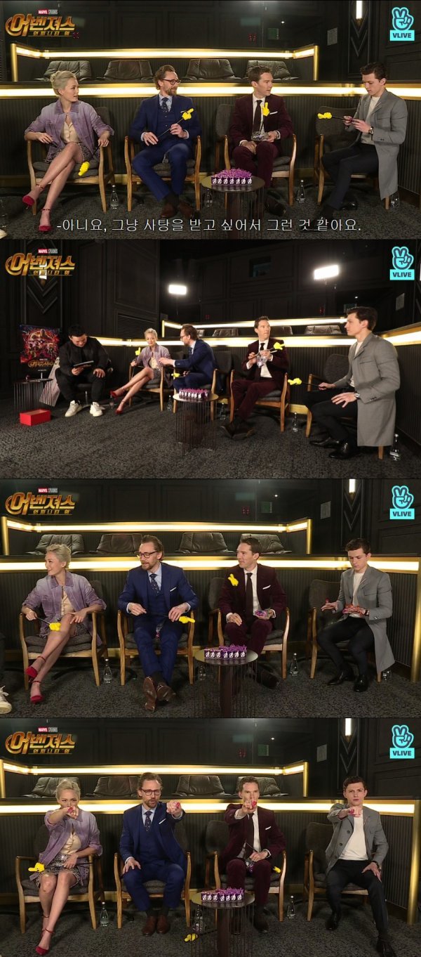 또 한국어로 배우들에게 “타노스 보고있나”라고 말하도록 요청하는 장면은 압권이었다. 배우들이 어색한 한국말로 이 대사를 외치자 생중계를 보고 있던 팬들은 ‘미안하다’라 ‘부끄럽다’라는 반응을 내놓기 시작했다.