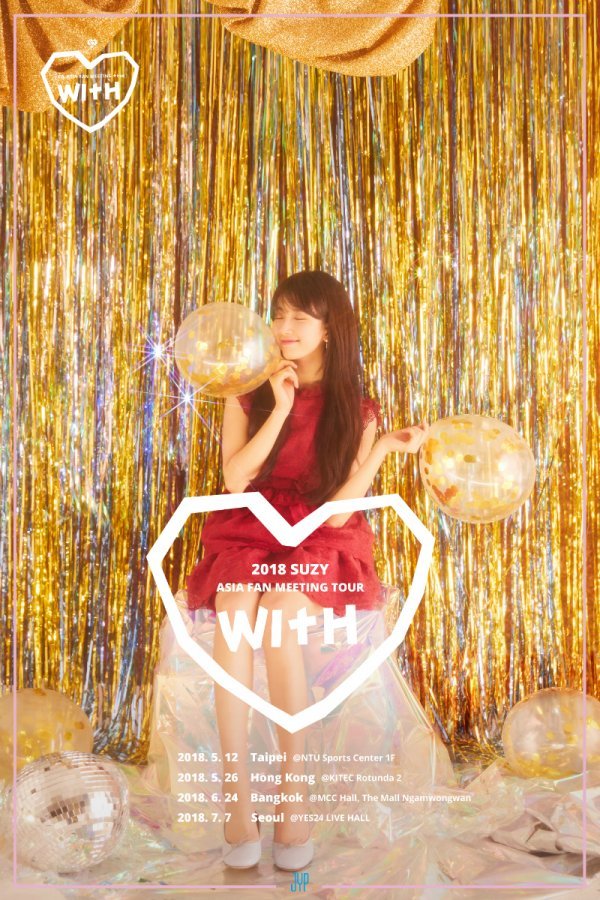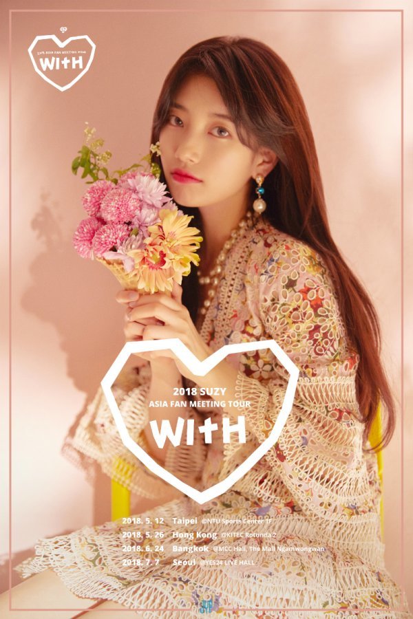 JYP엔터테인먼트는 지난 12일 오후 9시 JYP 및 수지 SNS에 '2018 SUZY Asia Fan meeting Tour 'WITH'' 포스터 3종을 게재하고 이같은 사실을 알렸다. 특히 수지가 데뷔 후 처음으로 갖는 아시아 팬미팅 투어로 더욱 의미를 더한다.