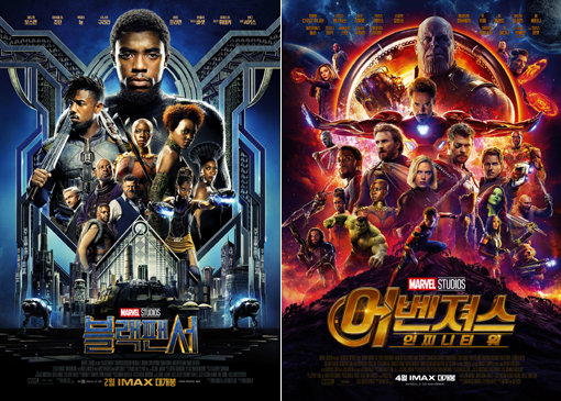영화 ‘블랙 팬서’(왼쪽)-‘어벤져스: 인피니티 워’. 사진제공|월트 디즈니 컴퍼니 코리아
