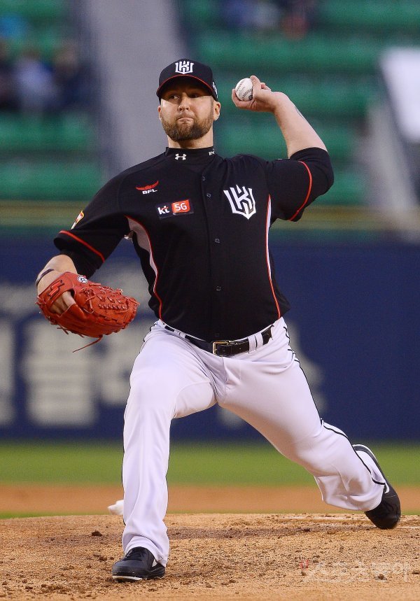 13일 서울 잠실야구장에서 ‘2018 신한은행 MY CAR KBO리그’ kt위즈와 LG트윈스 경기가 열렸다. 1회말 kt 선발 피어밴드가 힘차게 공을 던지고 있다.