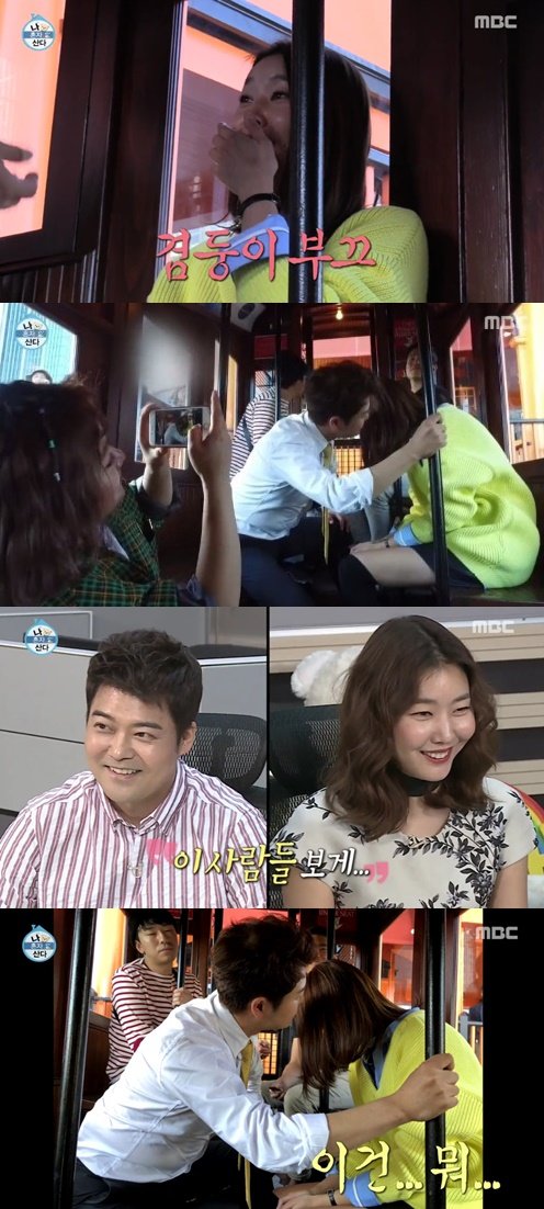 이날 방송에서도 전현무와 한혜진의 LA 로맨스가 계속됐다. 영화 \'라라랜드\'에 나온 트램을 타게된 멤버들은 차례로 뽀뽀를 하는 듯한 포즈로 사진을 찍었다.
