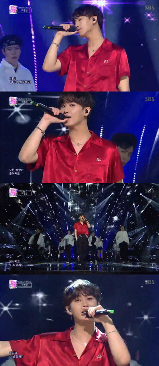 허영생은 15일 오후 방송된 SBS ‘인기가요’에서 신곡 ‘지구가 멸망해도(Feat. 매드클라운)’를 열창했다.