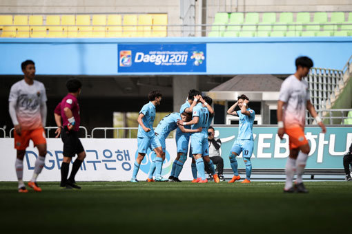 금세 차갑게 식어버린 분위기 회복은 불가능해보였다. 그러나 포기하지 않았다. 후반 종료 6분여를 남기고 수비수 김진혁이 결승골을 뽑았다. 본업이 공격수이지만 지난해부터 보직을 센터백으로 바꾼 그의 공격 본능이 빛을 발했다.