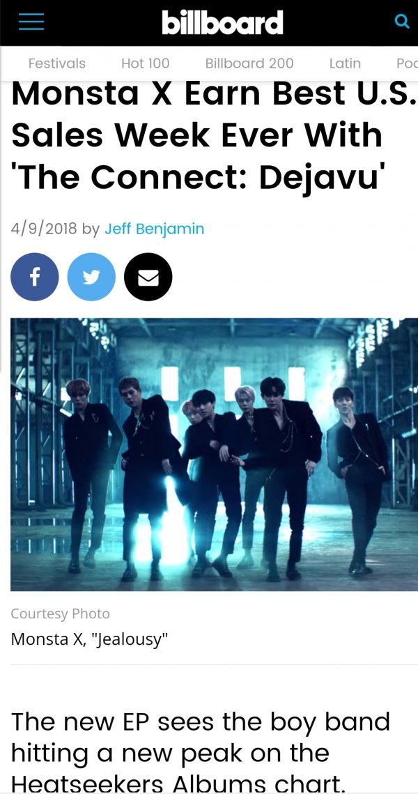 미 유명 매체 ‘빌보드’는 최근 “‘더커넥트: 데자뷰’로 미국에서 역대급 판매 성적을 거둔 몬스타엑스”라는 제목의 기사를 게재하며 몬스타엑스의 화려한 앨범 성적을 대외로 알렸다.