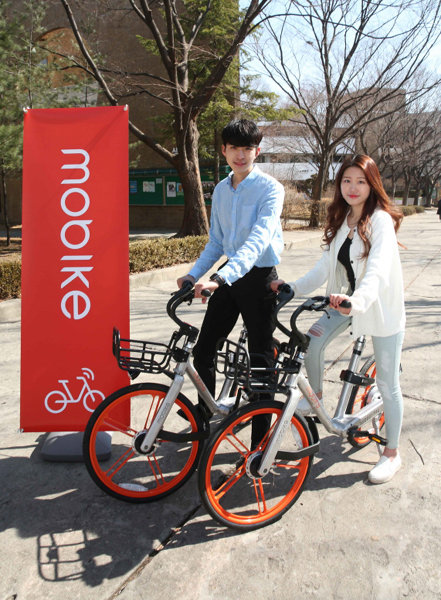 성균관대학교 자연과학캠퍼스 학생들이 모바이크 서비스를 이용하고 있는 모습.