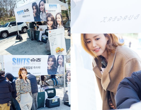 공개된 사진은 최근 경기도 모처에 위치한 ‘슈츠(Suits)’ 세트장을 포착한 것이다. 사진 속에는 배우 한지민이 보낸 햄버거 차와, 촬영 중 맛있는 간식을 위해 모인 스태프들의 모습이 담겨 있다. “SUITS 슈츠 대박 기원. 정안 언니 로펌 입성 축하해! 지민이 드림”이라는 센스 넘치는 문구, 한지민과 채정안의 다정한 셀카가 담긴 현수막이 눈에 띈다. 평소 절친으로 알려진 채정안과 한지민의 서로를 위하는 마음이 보는 사람까지 기분 좋게 만든다.