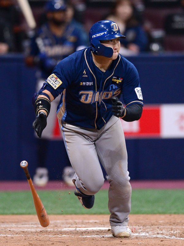 17일 서울 고척스카이돔에서 ‘2018 신한은행 MY CAR KBO리그’ NC다이노스와 넥센히어로즈 경기가 열렸다. 6회초 무사 2루 NC 나성범이 동점을 만드는 1타점 적시타를 치고 있다.