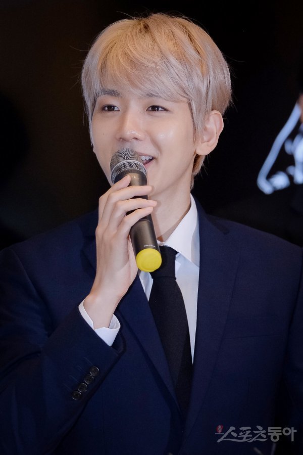 인기 K팝 그룹 엑소(EXO) 백현이 18일 서울 강남구 삼성동 코엑스 SM아티움에서 열린 K팝 스타메달 1호 ‘엑소 공식 기념 메달’ 공개 기자회견에서 인사말을 하고 있다.